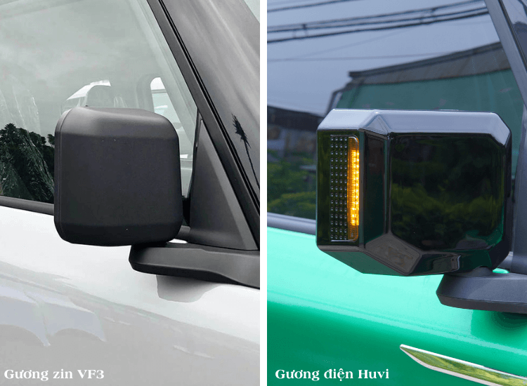 Thiết kế khít form xe VF3, nhìn như đồ nguyên bản. Lại còn tích hợp sẵn xi nhan và chỗ lắp camera 360, quá tiện!